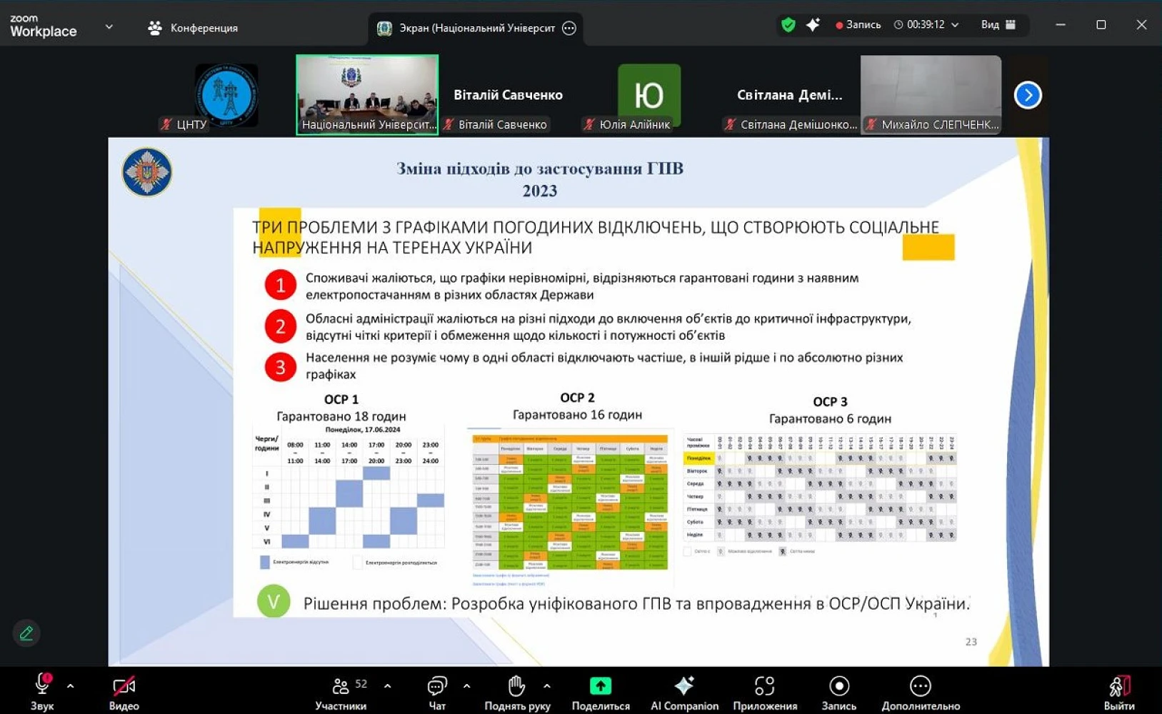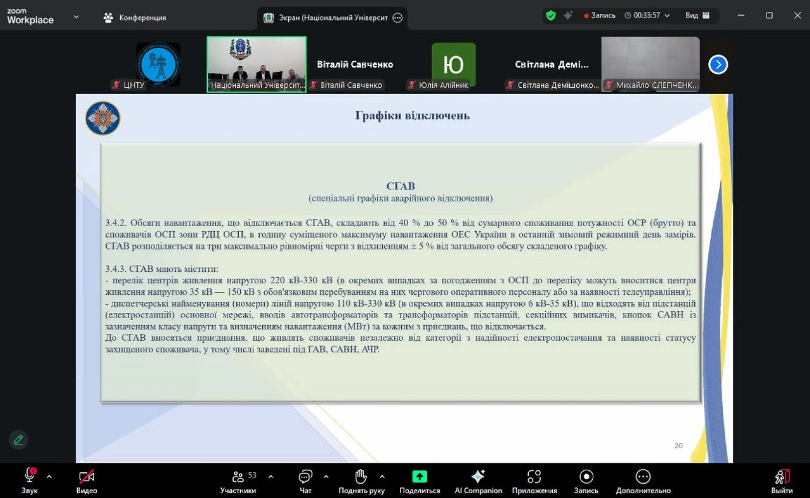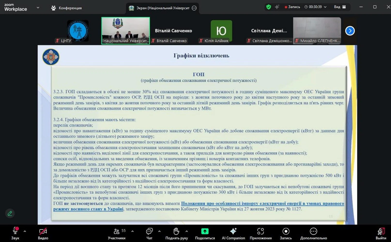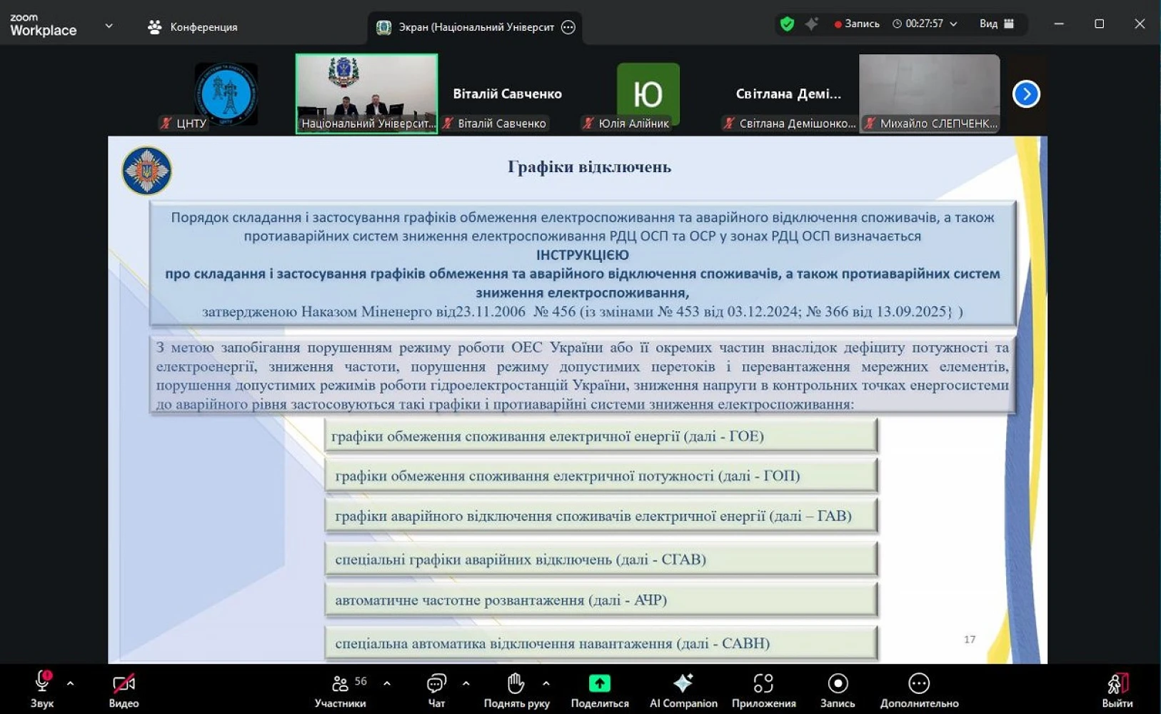 Основним доповідачем заходу виступив начальник Управління Держенергонагляду у Київській області. Тренінг проходив у комбінованому (онлайн та офлайн) форматі, що дозволило студентам ЦНТУ ознайомитися з сучасними підходами, спрямованими на підвищення стійкості та надійності української енергосистеми в умовах безпрецедентних загроз.