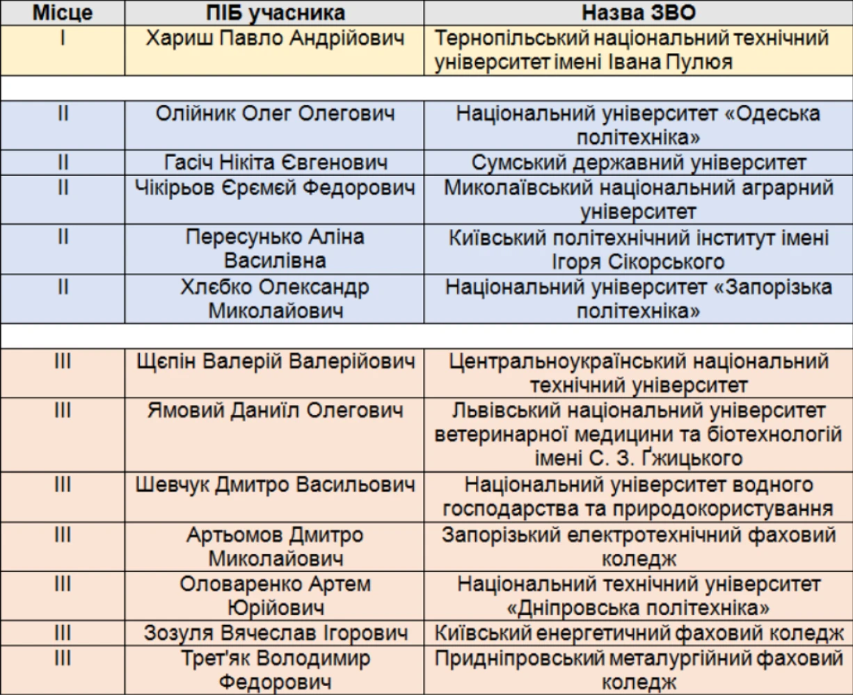 За результатами напруженої боротьби та перевірки теоретичних і практичних знань В. Щєпін продемонстрував високий рівень професійної підготовки, здатність вирішувати комплексні інженерні задачі та здобув почесне 3-тє місце.